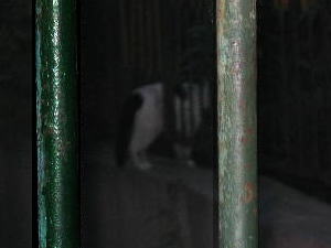 | 夜遅く、道を横切る猫影を発見!一軒の家の門に隠れたところを撮りました。 | ...でも、すぐ逃げられてしまいました。 |